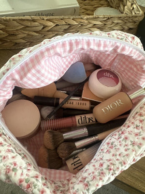 Our Cream Large Makeup Bag is a stylish and spacious carry-all designed to hold all your essentials with a classic look.